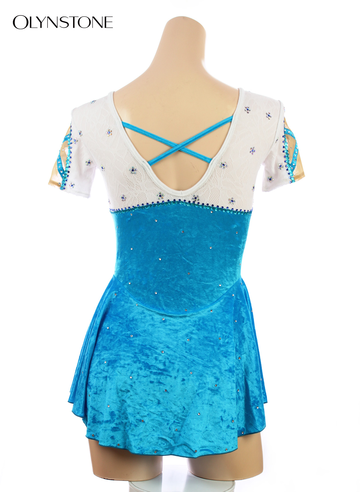 ターコイズのクラッシュドベルベットと白ベルベットをベースに、二色のクリアクリスタルとスパンコールを装飾した美しいフィギュアスケート衣装です。パンツ部分は白ベルベットです。アクセントとして、両袖と胸元に白メッシュをあしらいました。色付きクリスタルの追加をご希望の方は「オーロラ/ABタイプ」をご指定の上、色付きの旨、及び色を備考欄にご記入ください。