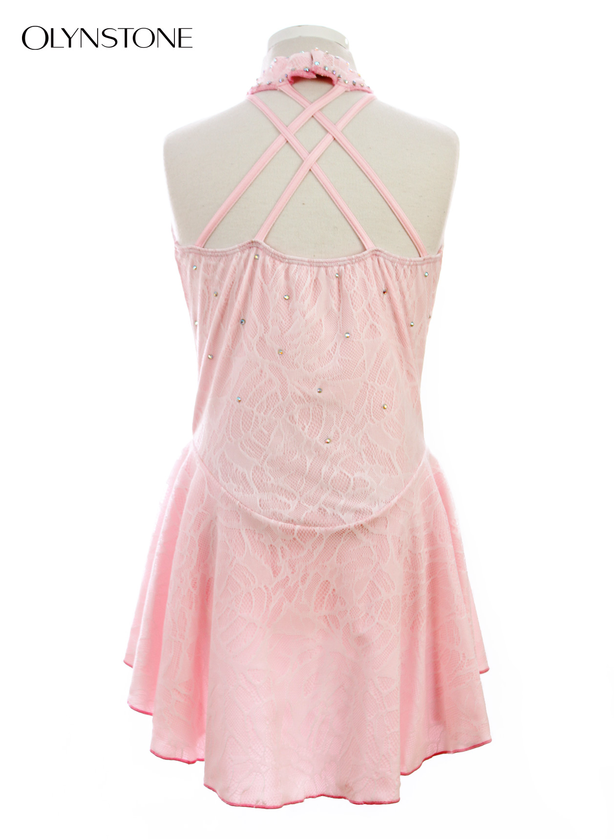 ライトピンクライクラに白レースを重ねたレイヤー仕様のデザインです。 胸元にオーロラクリスタルとスパンコールを装飾した美しいフィギュアスケート衣装です。 パンツ部分はライトピンクライクラです。この写真のベージュメッシュ部分には、ベージュライクラを内地として追加してあります。色付きクリスタルの追加をご希望の方は「オーロラ/ABタイプ」をご指定の上、色付きの旨、及び色を備考欄にご記入ください。
