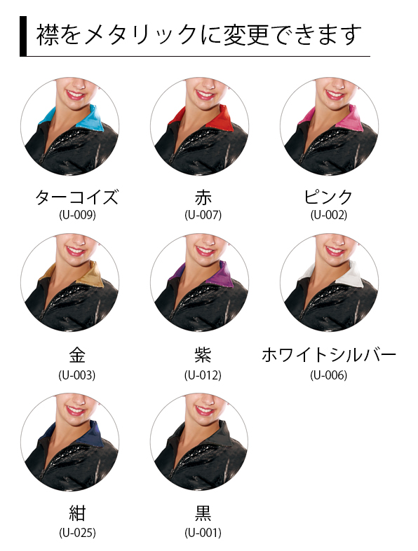 光沢感の美しいメタリック生地を使用したチームジャージです。体操・新体操・バレエ・HIPHOPなど様々なジャンルの皆様に。襟の素材を変更することが出来ます。オリジナルロゴのプリントや刺繍、クリスタルでチーム名等を入れることも可能です(プリント、刺繍、クリスタルロゴの料金はaiデータをいただいた場合の料金です。それ以外のデータの場合はお問合せください)その他、詳細はお問合せください。